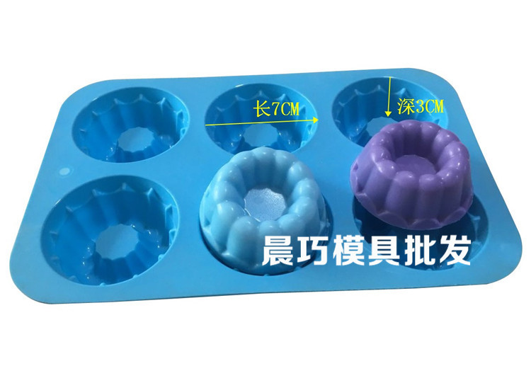 说明: 耐热温度为-40℃到+230℃,可以重复使用,造型新颖、质地柔软 、款式多变、脱模容易、清洗方便 可用于,做蛋糕,肥皂,布丁,巧克力。。。。通用