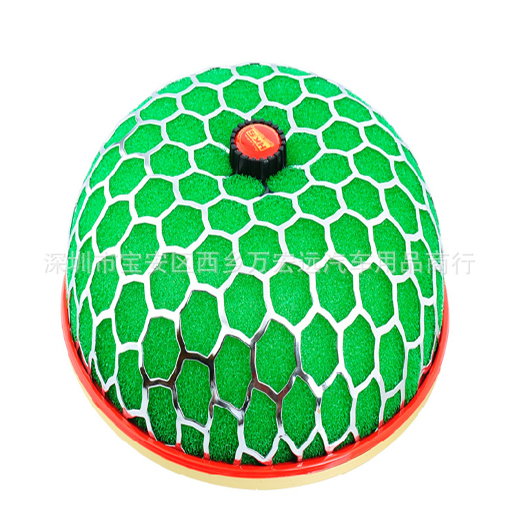 描述:高流量空气滤芯可降低引擎进气的阻力,同时提高引擎运转时单位时间进气量及容积效率。半圆球形状蜂巢构造,可以将乱窜的气流往六个方向平均分散,让空气形成顺畅的流动。而内侧骨架的扇形部分,采用16支呈放射形状支架设计,这样的结构相对比较硬朗。如果将冬菇头破开,从圆弧形支架的断面可以清楚看见漏斗状的构造,这样的设计使香菇头内侧产生真空地带,可以强制性地吸入空气,如此一来扇形部分的面积完全不会浪费,让实际吸入面积变大。