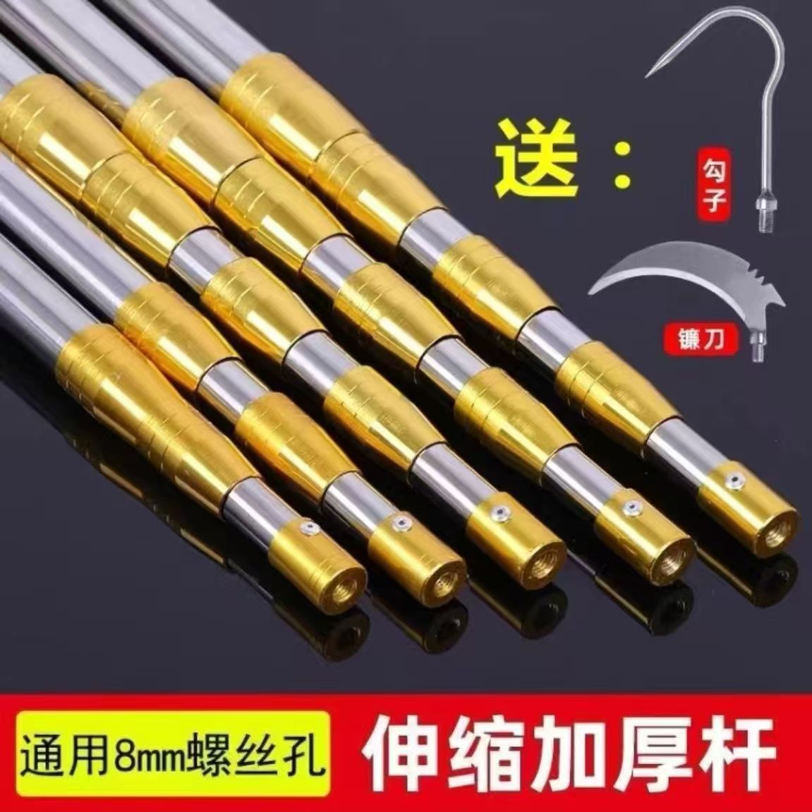 万能多节超轻不锈钢万能伸缩杆功能高空抄网摘果香椿槐花镰刀加厚