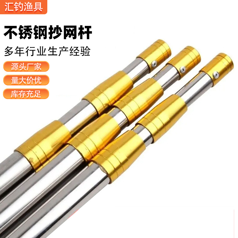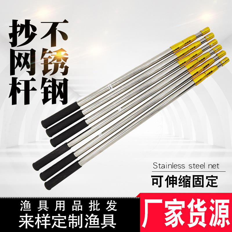 不锈钢抄网杆伸缩定位抄网竿超硬加厚伸缩杆钓鱼用品大物抄网