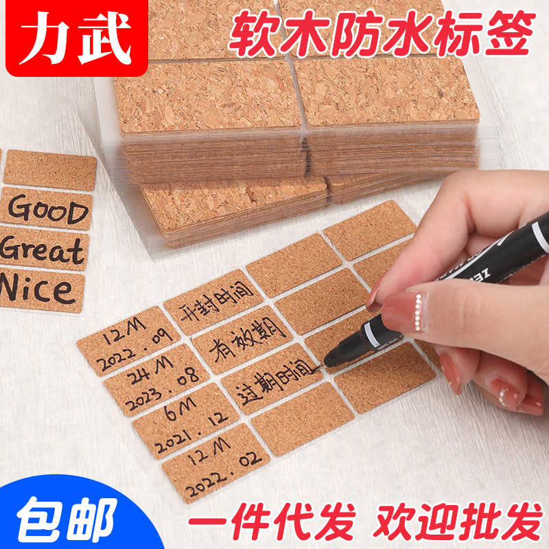 コルクのラベルのステッカーは木の手書きをまねて防水の手帳の用品の価格の分類の標識の瓶を貼ります。