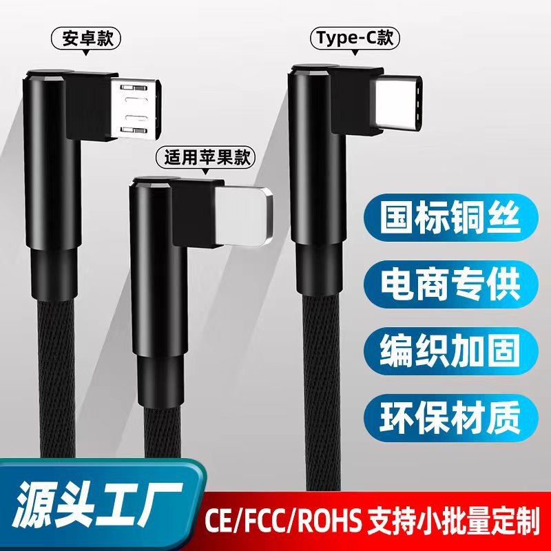 弯头数据线适用华为苹果三星typecoppo小米vivo红米加长充电线