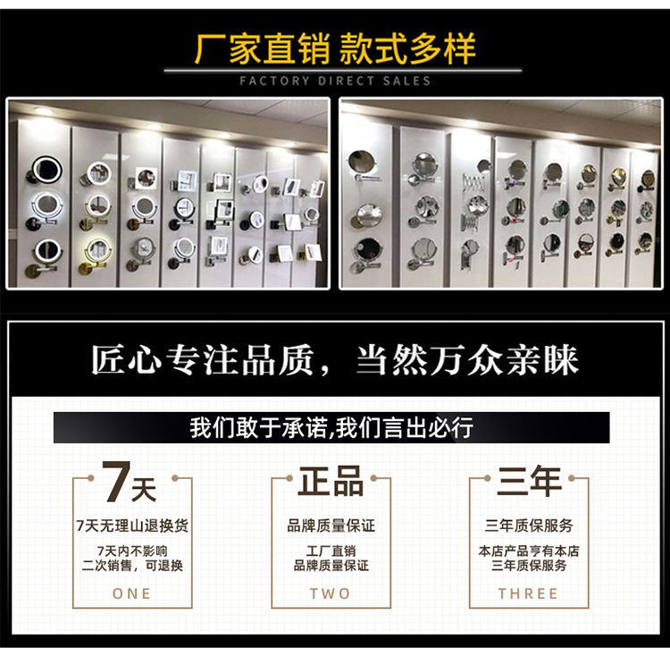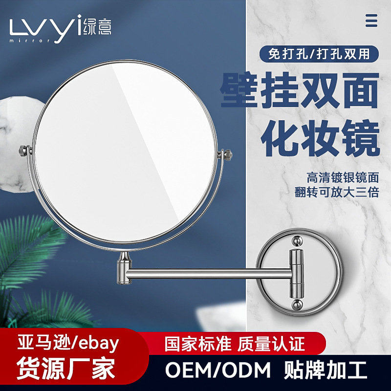 化粧鏡壁掛け鏡家庭用ステンレス両面伸縮回転ハイビジョン折り畳み浴室鏡3倍拡大鏡