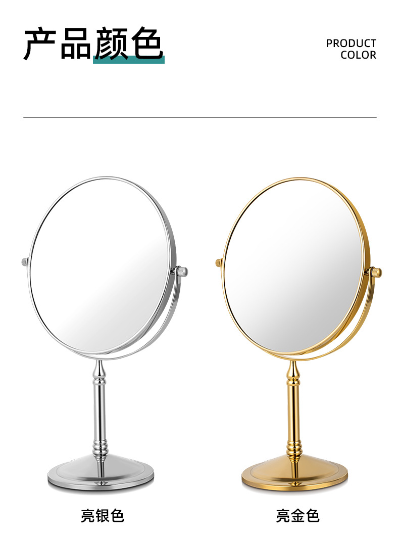 家庭用金属両面hdデスクトップ化粧鏡ファッション鏡女子浴室美容鏡デスクトップ鏡に適しています