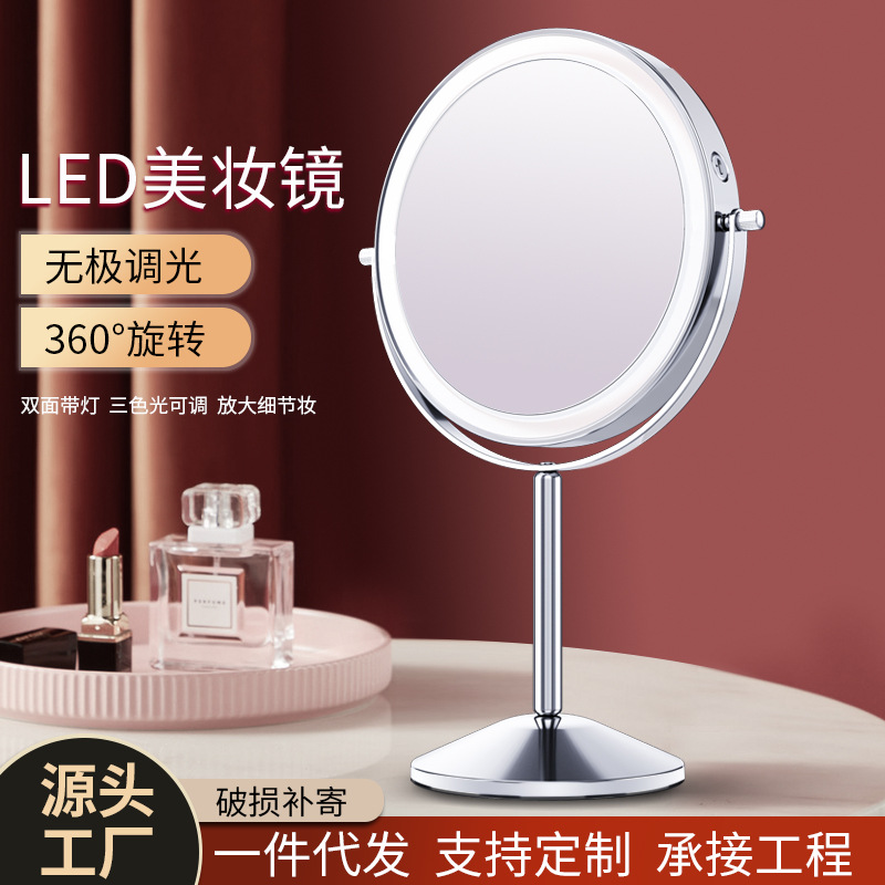 アマゾン8インチled化粧鏡ランプ付きデスクトップデスクトップ化粧鏡寮ネットレッド調光美容鏡