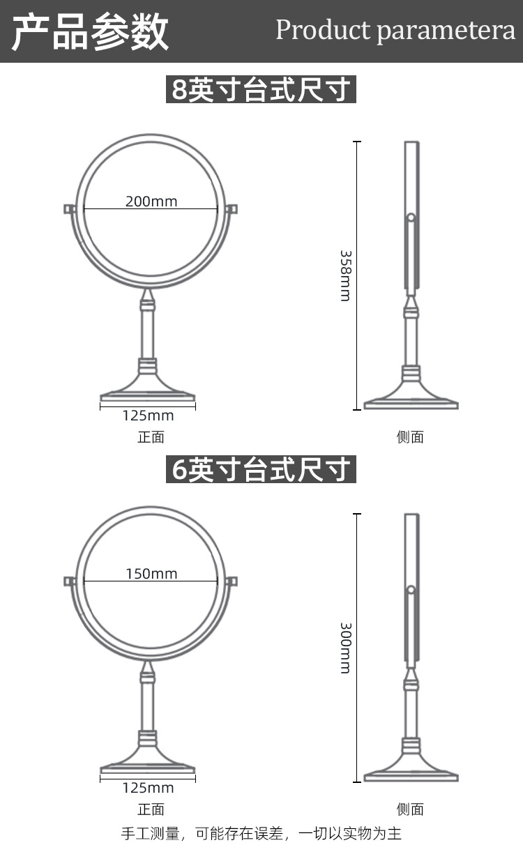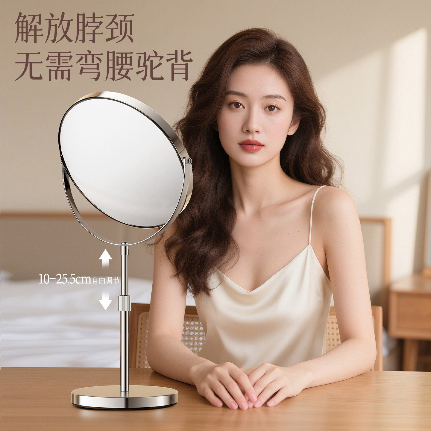 化妆镜可升降调节式高低台式家用梳妆立式桌面镜双面放大美容镜
