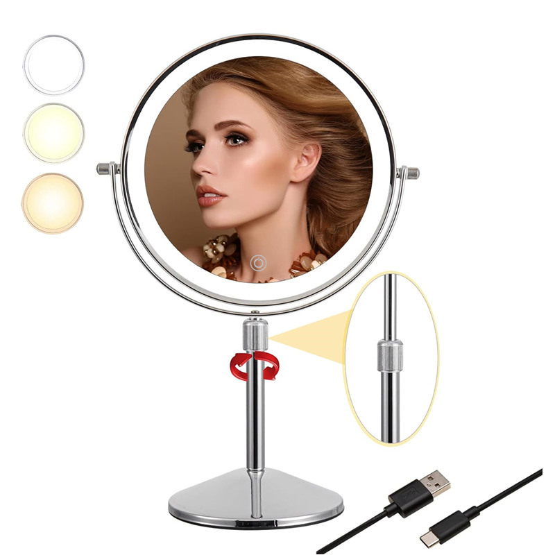 昇降可能LED化粧鏡両面化粧鏡ランプ付き卓上鏡三色照明美容鏡調節可能な明るさ