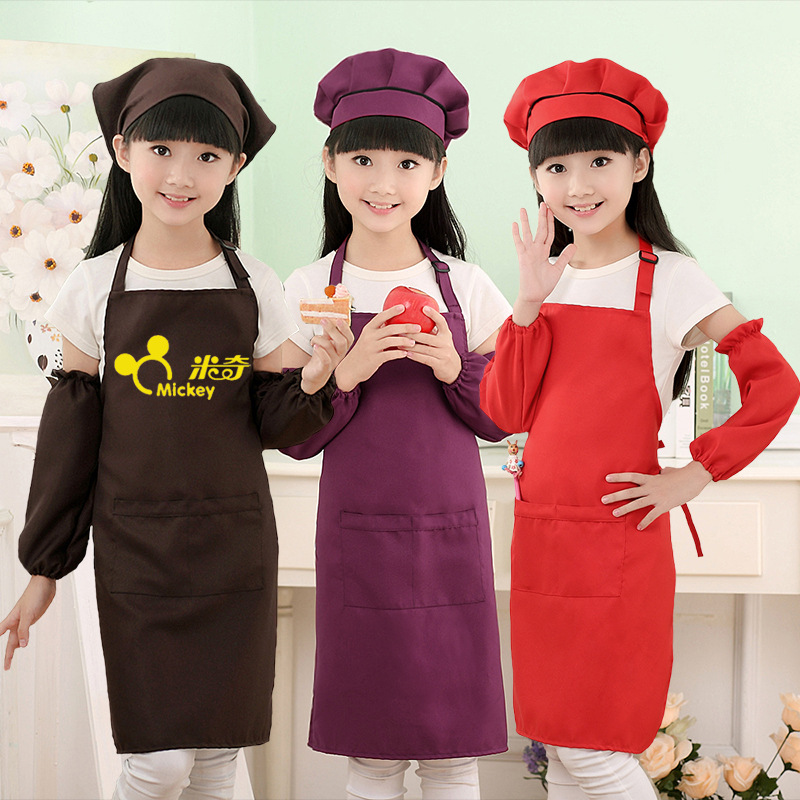 幼い子供の広告エプロンカバー袖カバーロゴ予約幼稚園絵画ベーキングエプロンセット卸売り