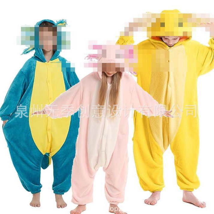 跨境儿童蝾螈卡通动物连体睡衣秋冬季摇粒绒万圣节宝宝演出家居服