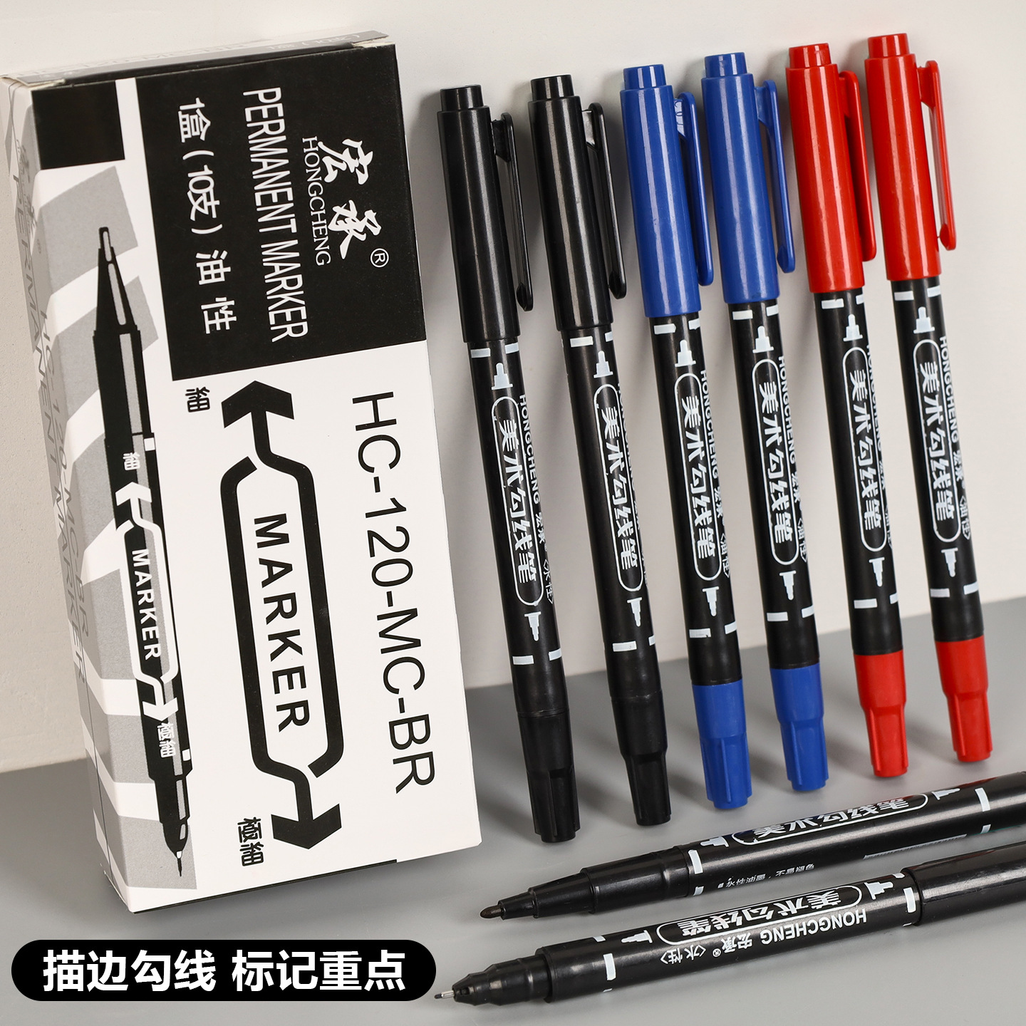 小さなダブルヘッドマーカー油性120黒速干マークペン大容量美术絵画ラインペン卸売