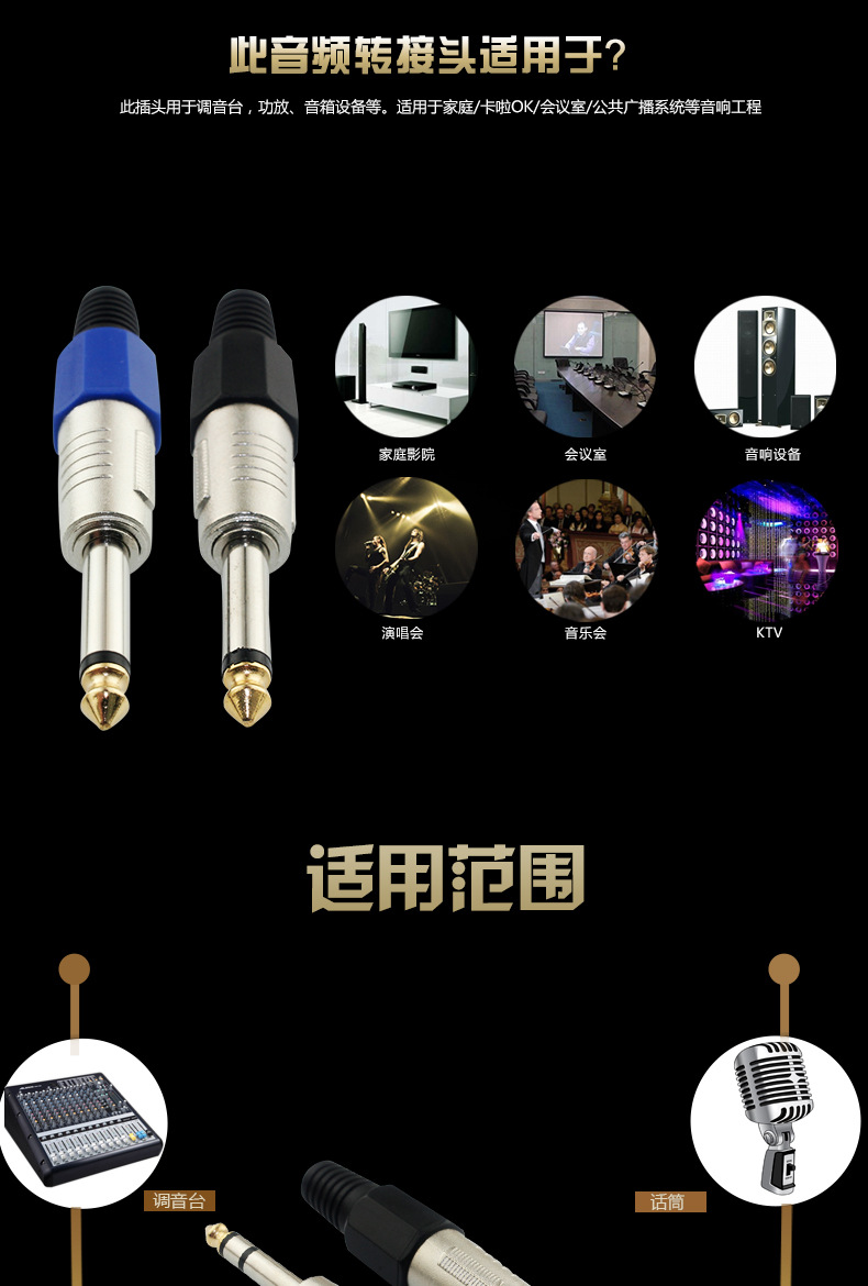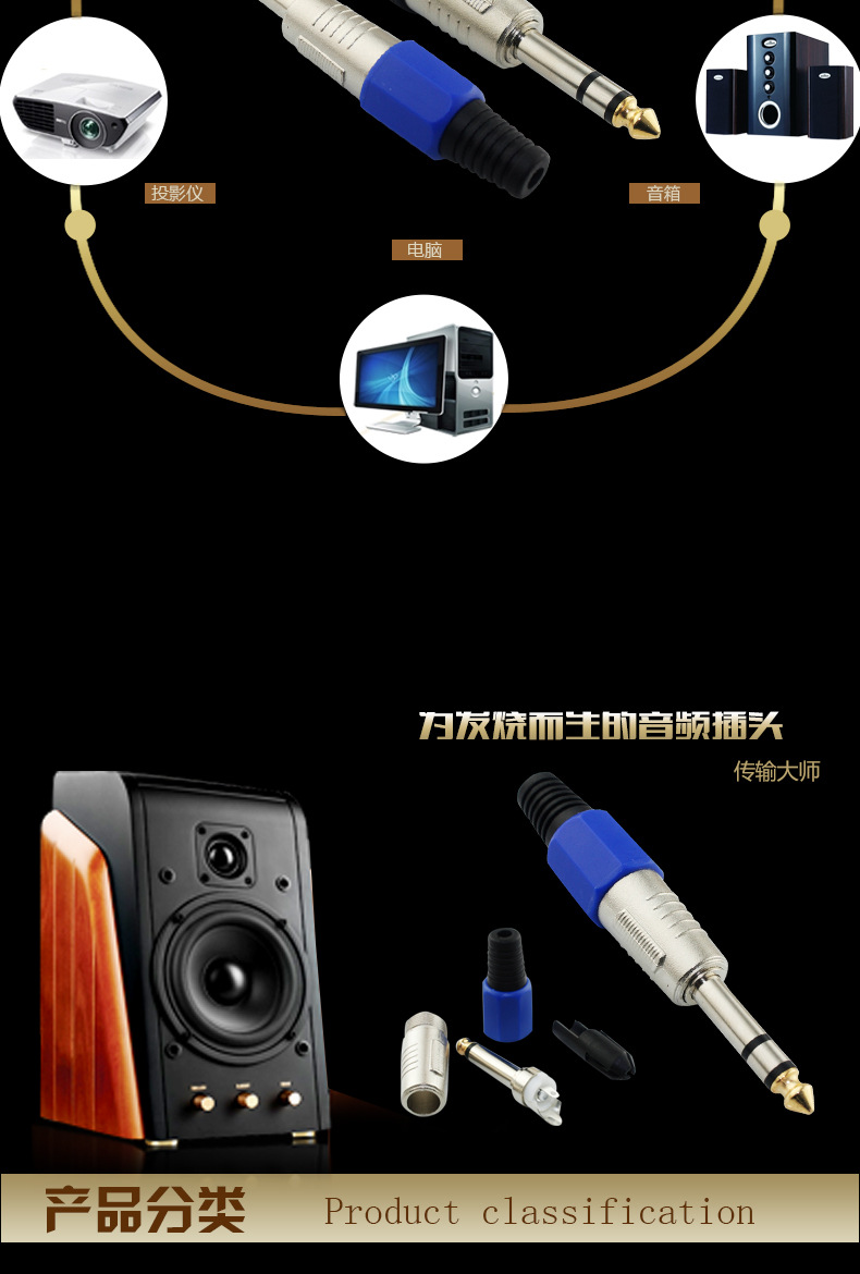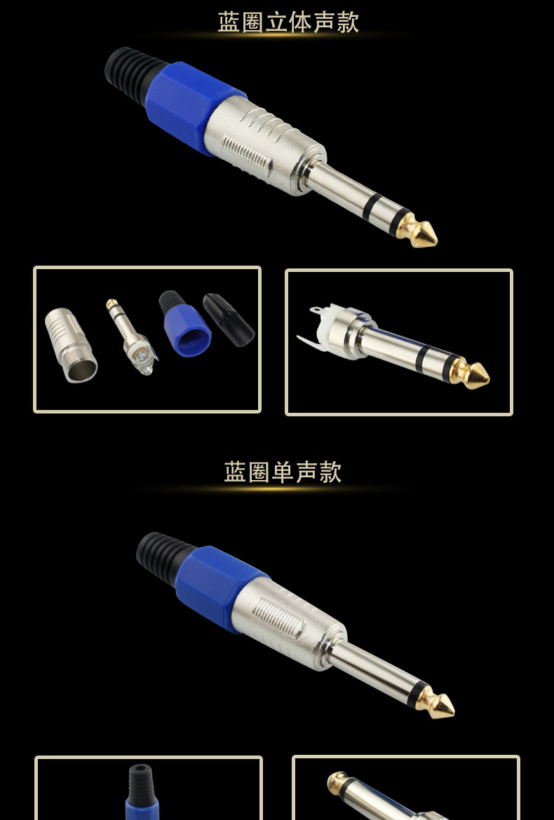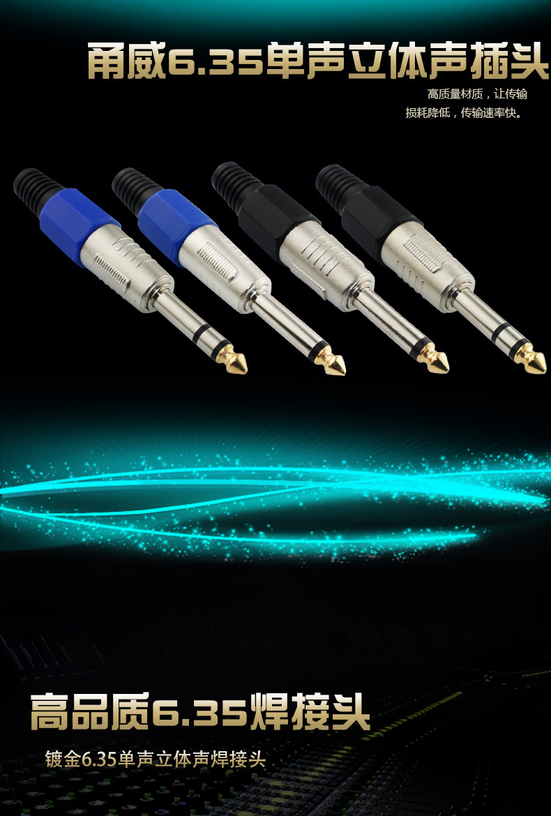 甬威銅メッキ真金6.35大二芯大三芯プラグ6.5単声/立体オーディオライン溶接継手
