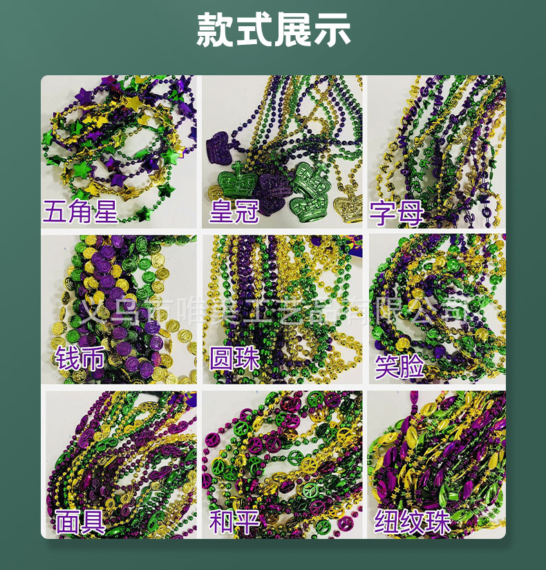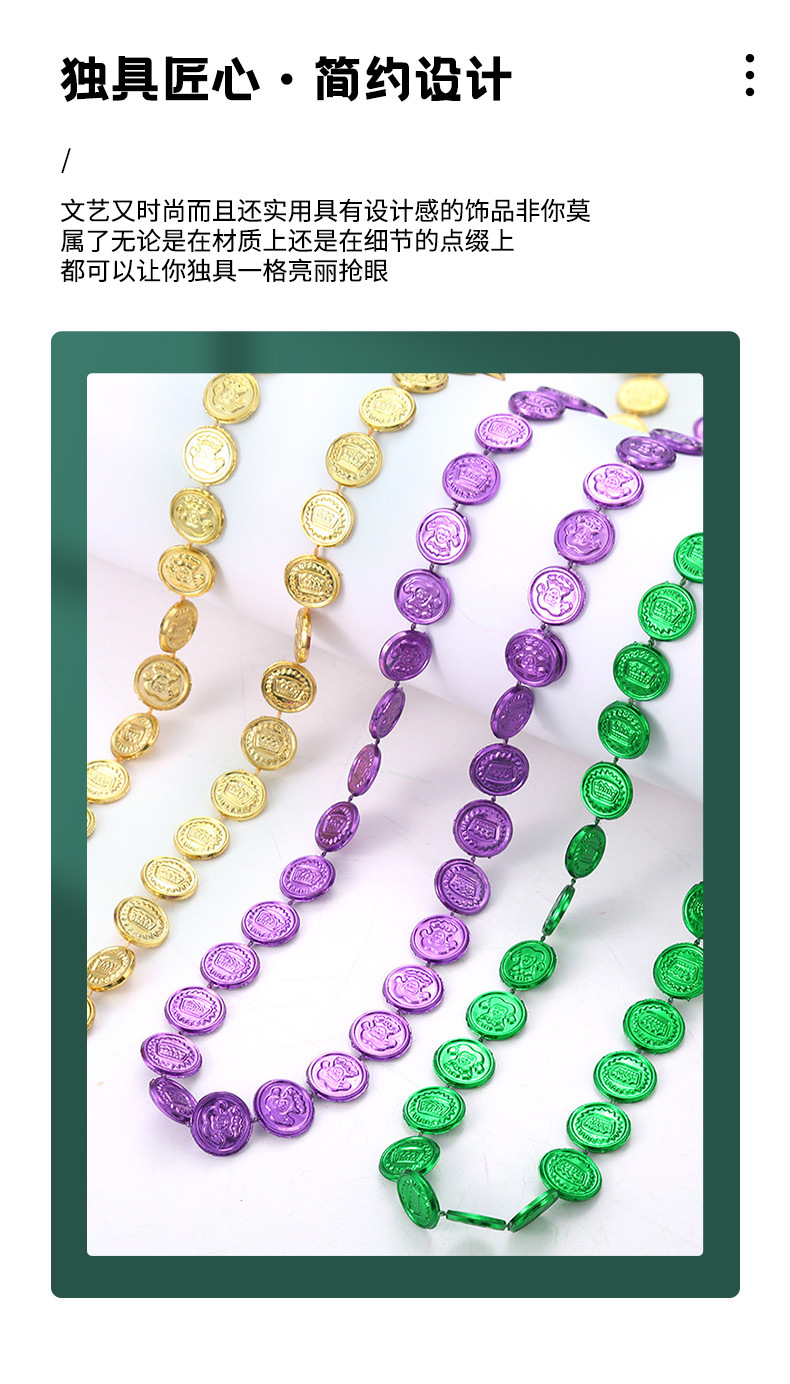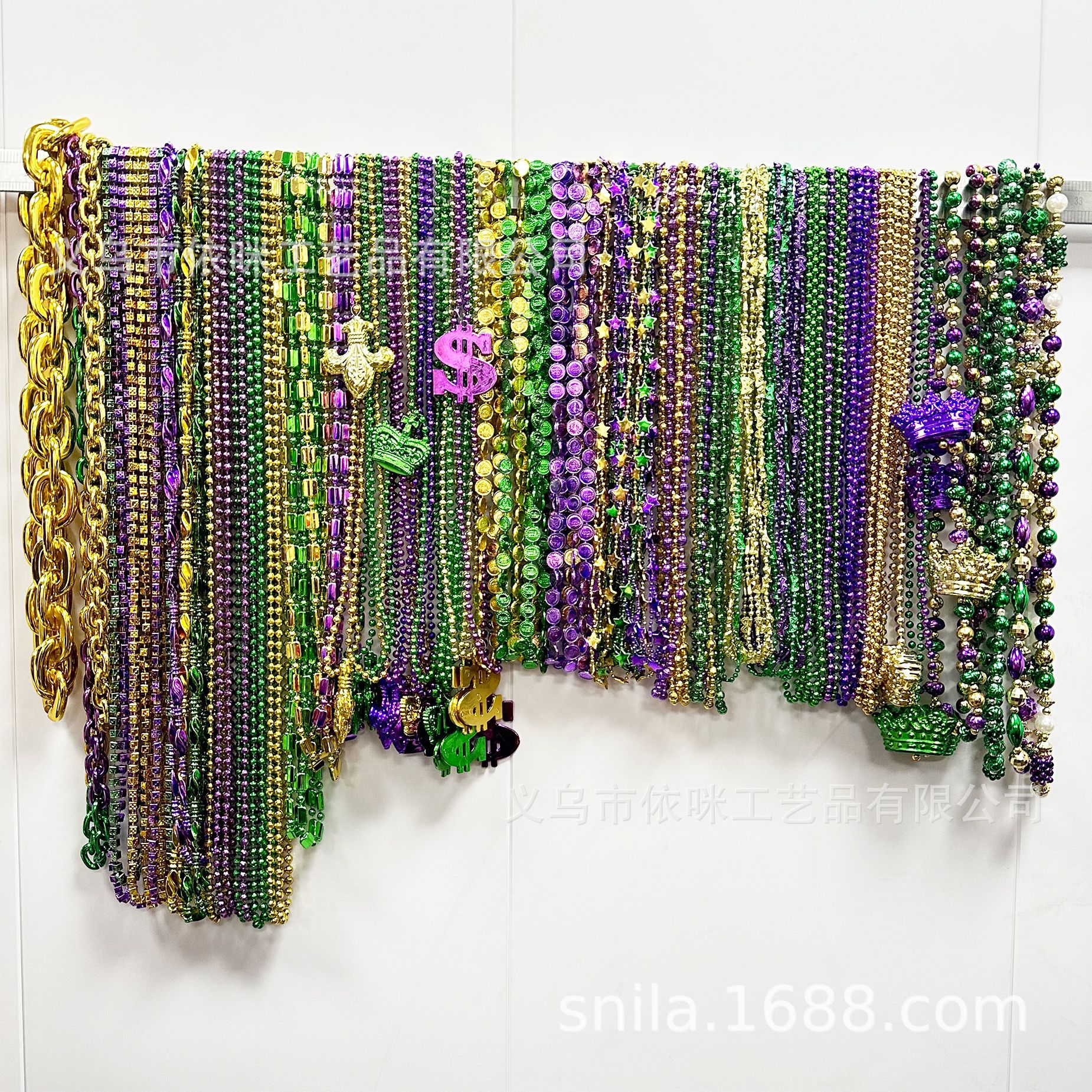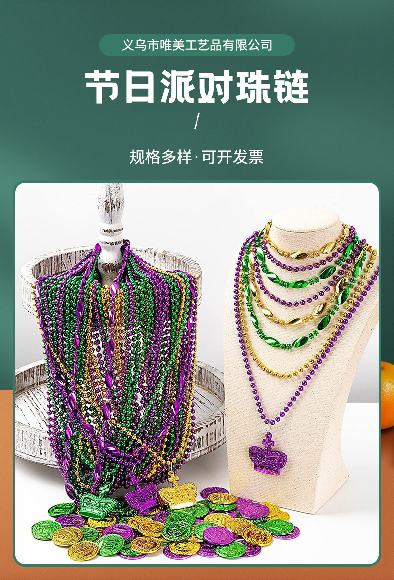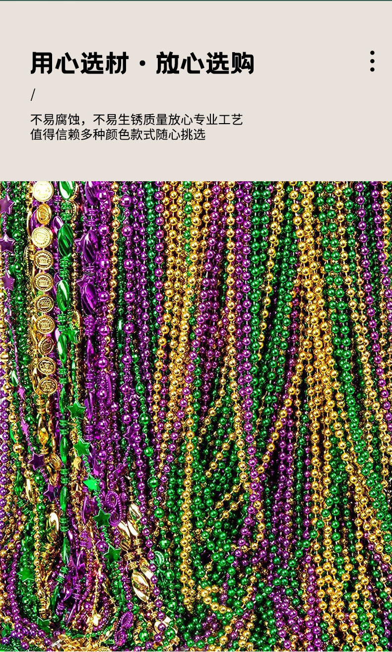 跨境狂欢节项链新奥尔良节日派对项链派对塑料珠子项链Mardi Gras