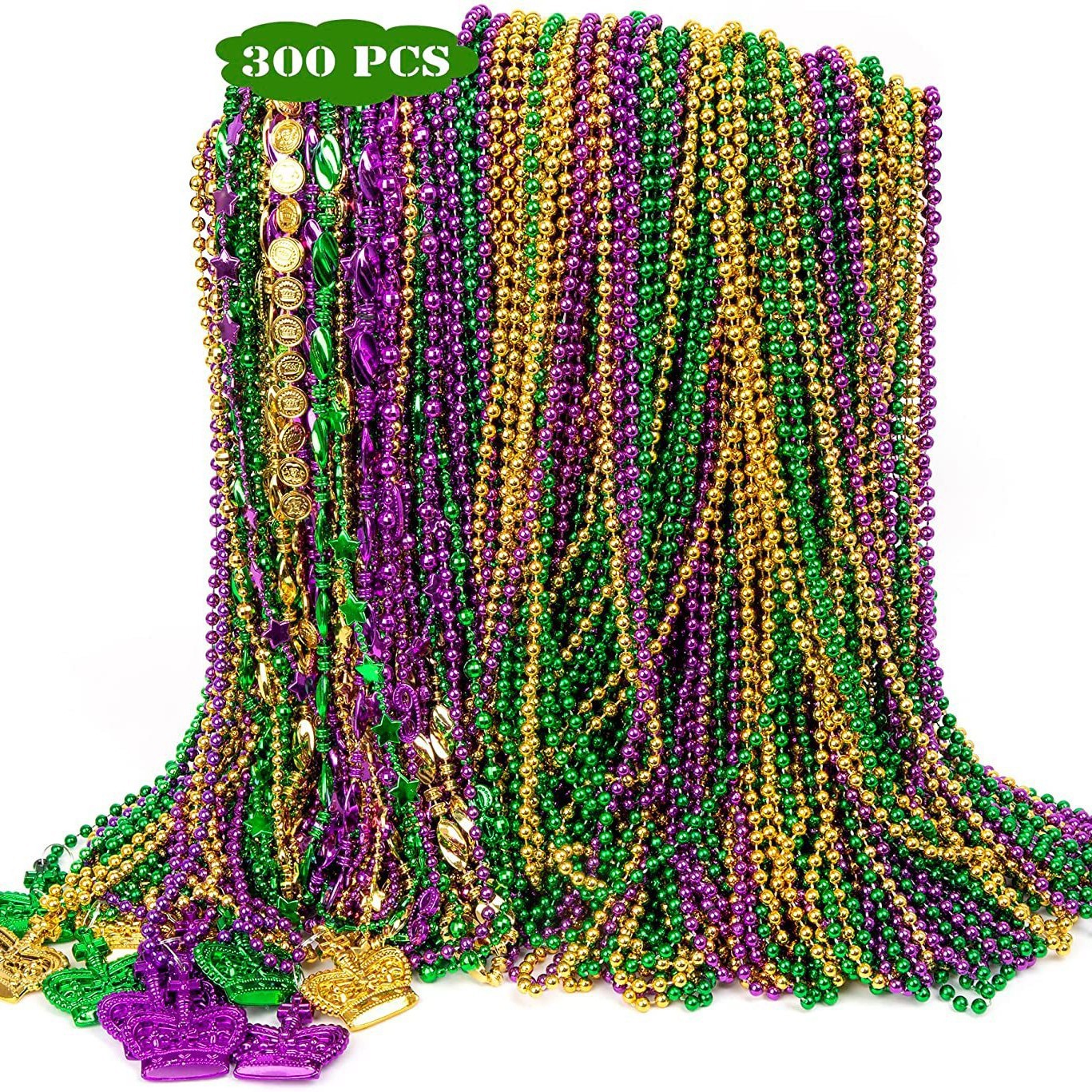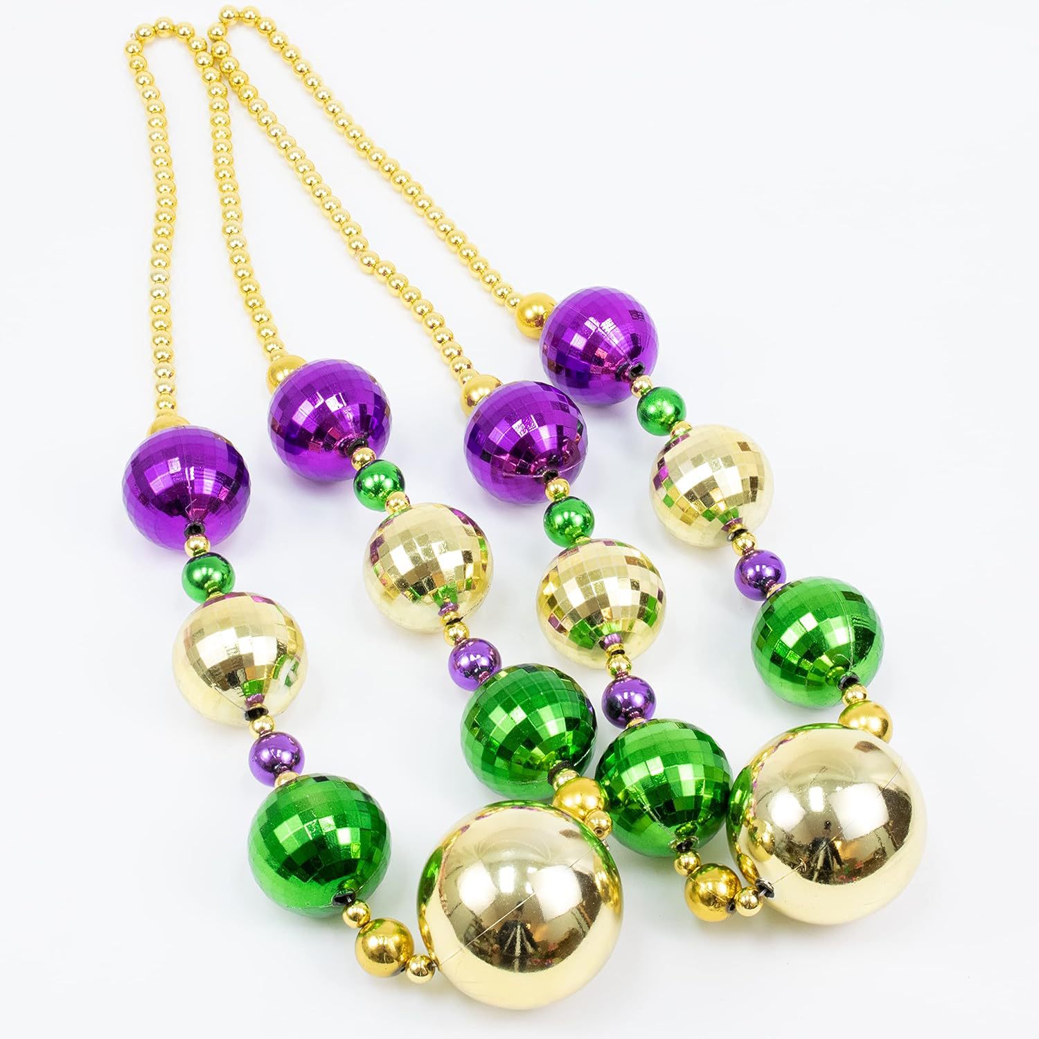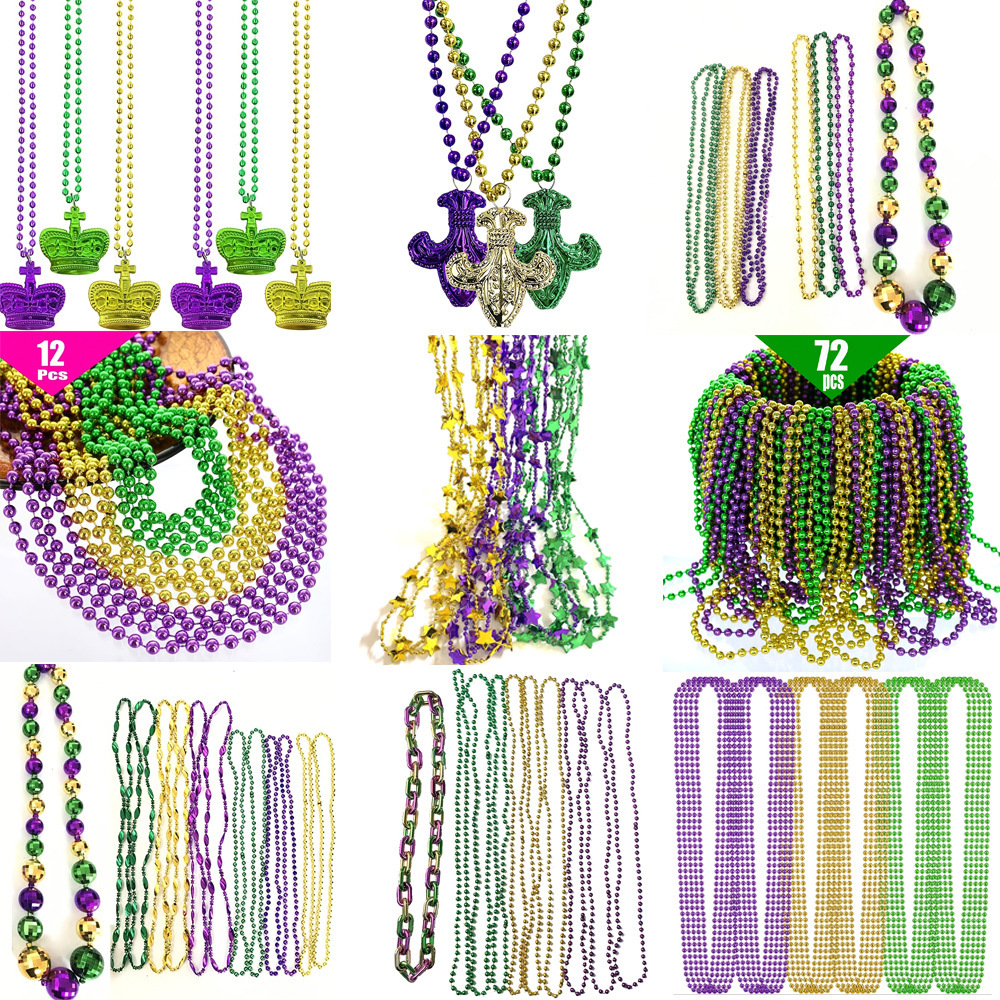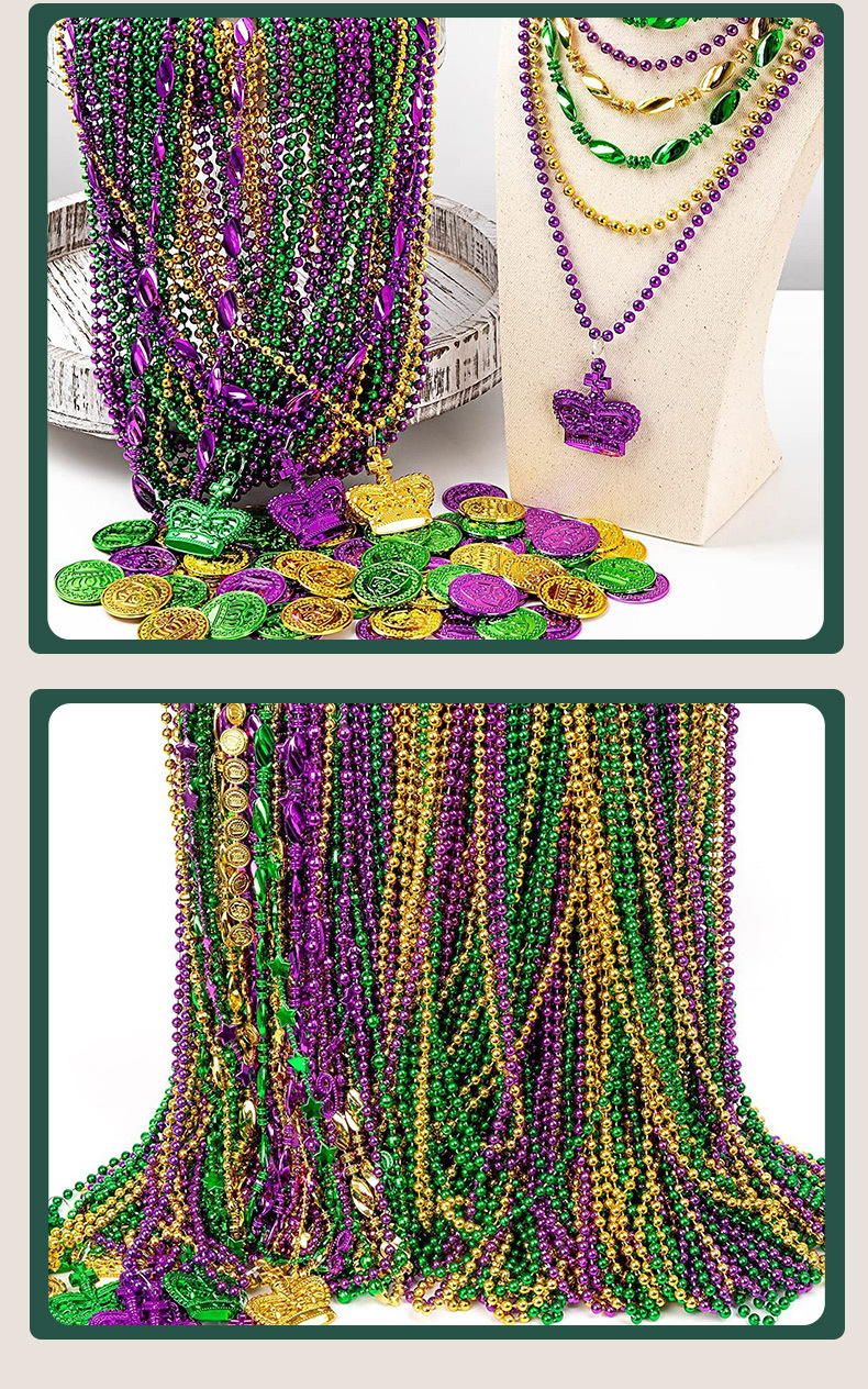 ニューオーリンズカーニバル三色ビーズチェーン紫金緑ビーズチェーンメッキプラスチックビーズチェーンmardi grasネックレス