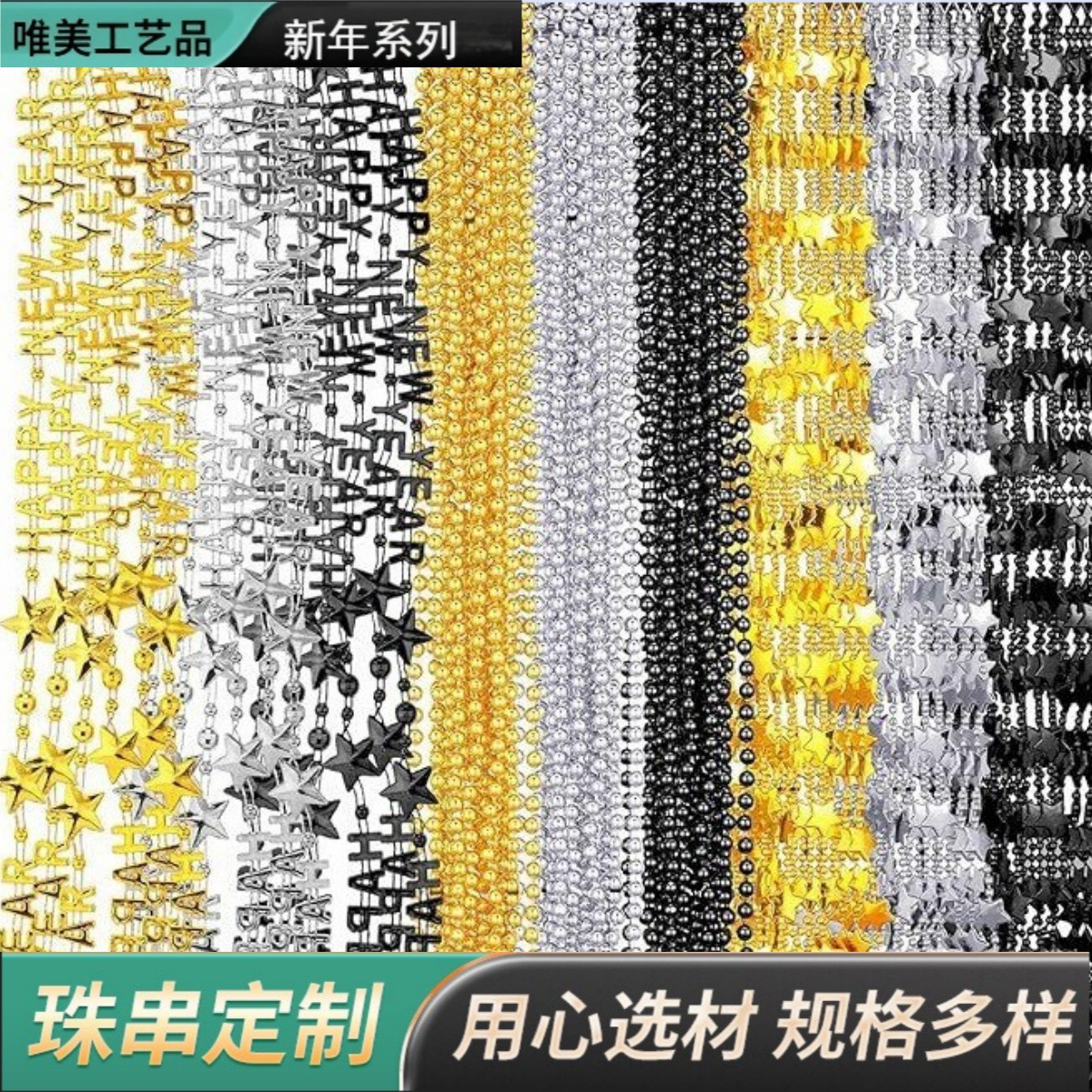 あけましておめでとうございますブラックゴールドラウンドビーズネックレスプラスチックhappy new year新年パーティー祝日装饰用品