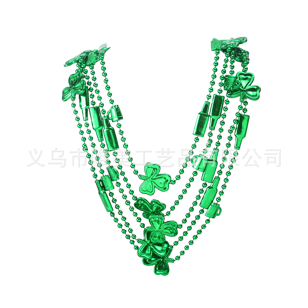 メーカー直販アイリッシュクローバーネックレス緑プラスチック幸運草ビーズチェーン祝日パーティー装飾品