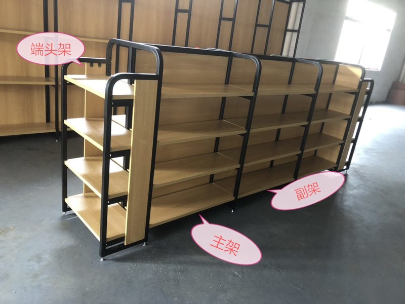 工場直売スーパー棚コンビニ両面棚母子店展示棚多層鋼木棚