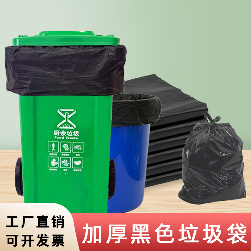 ゴミ袋黒色大サイズ平口厚手特大ビニール袋使い捨て不動産ホテル厨房商用卸売り