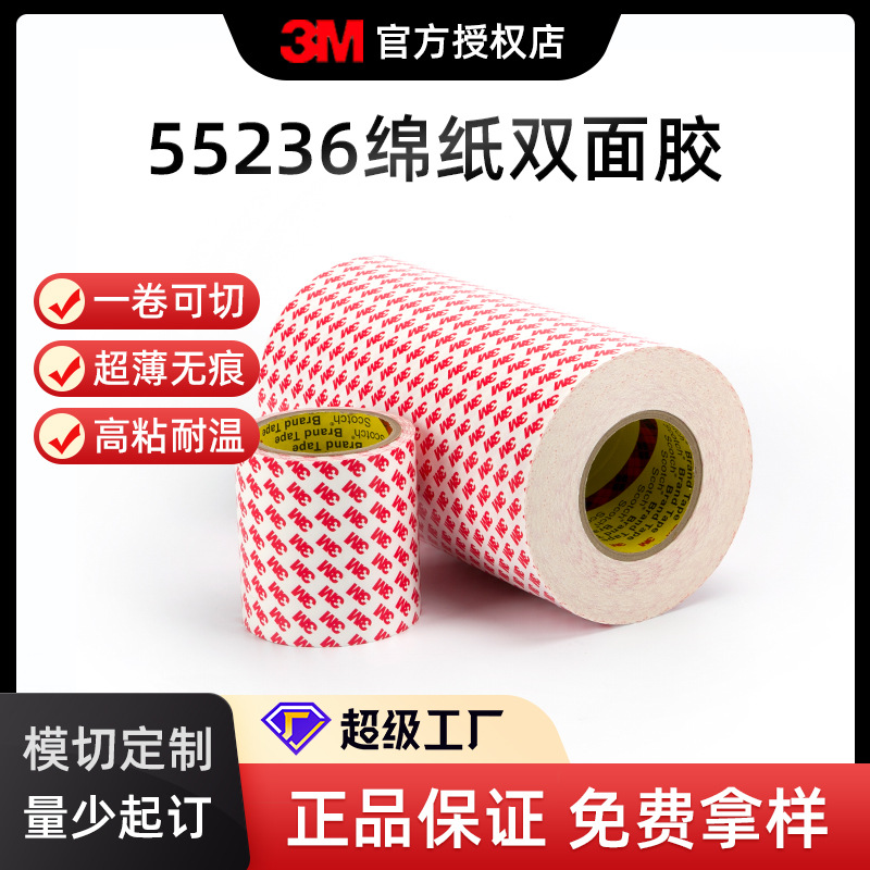 3m両面テープ55236a極薄ティッシュペーパー強力粘着跡のない生地宋錦ゴムハードウェア工業用両面粘着テープ