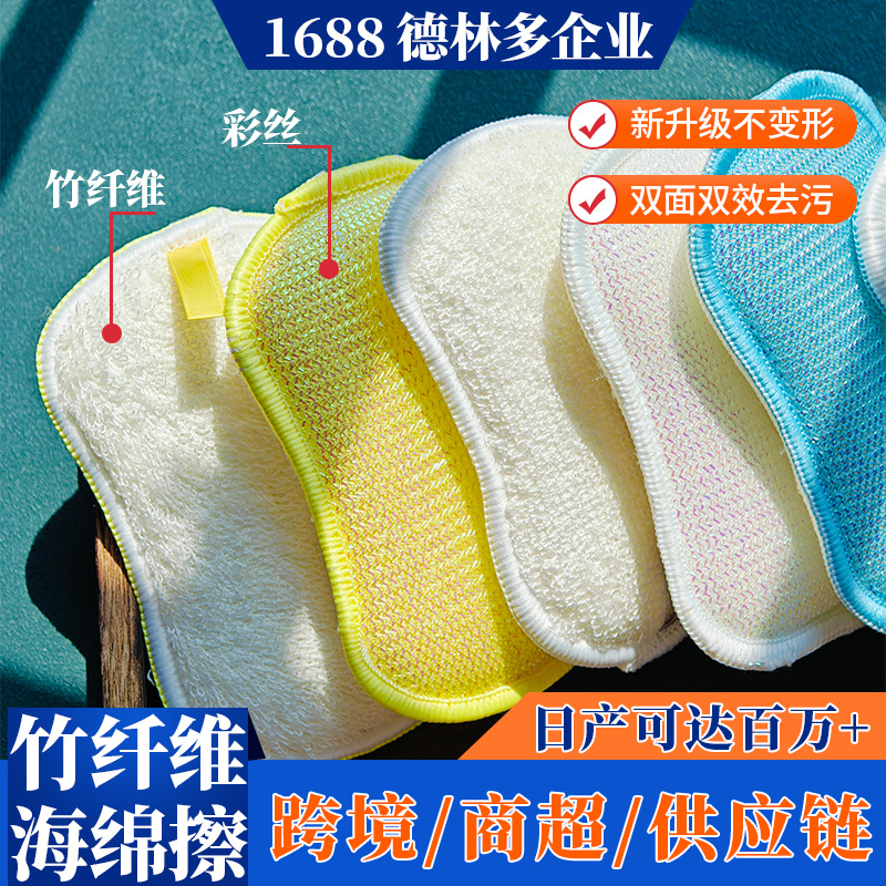 カラーシルク竹繊維両面皿洗いスポンジクロスボーダー皿洗い鍋の魔力拭きボウル清潔スポンジ拭き卸売り