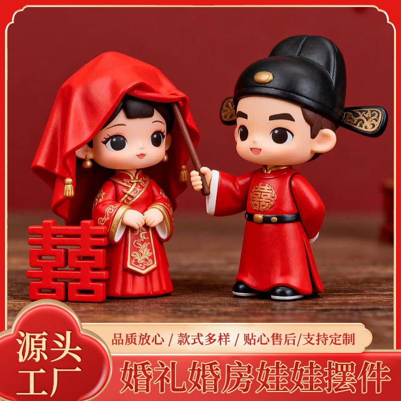 中式结婚摆件婚庆装饰品婚礼用品新娘新郎工艺品情侣结婚树脂摆件