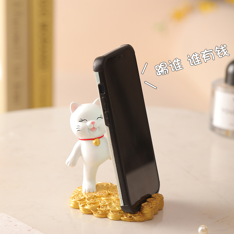 招き猫玄関飾り携帯電話スタンド小型卓上ギフト樹脂製招福宝物トレンド樹脂工芸品