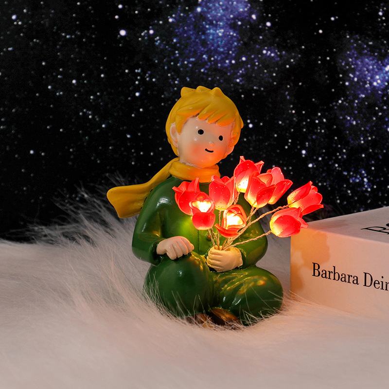 新王子とバラの夜の明かりのデスクトップの装飾品の置物のアイデアの女子学生の誕生日のクリスマスのプレゼントの癒し系