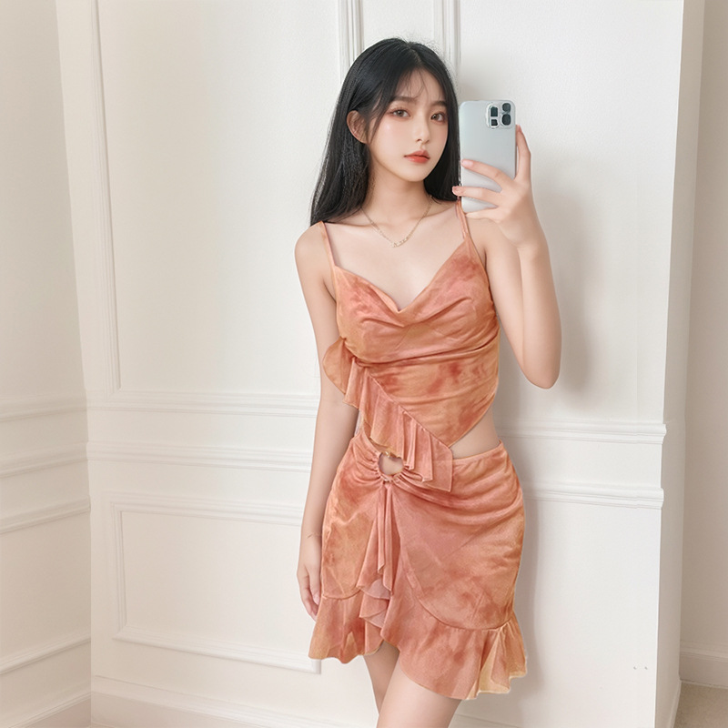 温泉水着の女性ファッションの爆発物の純色はやせています。