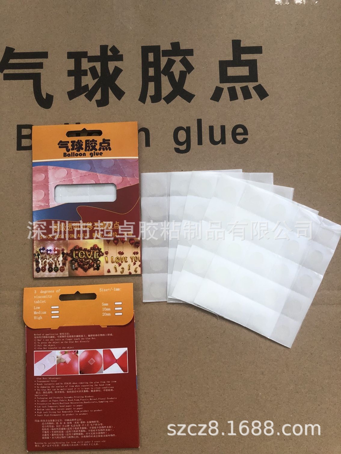 20粒/片 高粘性 直径大约12MM 一件5000片胶点采用环保无毒硅胶做原料,均达到欧洲环保标准 无色透明,粘气球, 贴喜字,粘照片,粘花车,粘对联 ,封经包等等 ,专门为婚庆场合订做,无痕可移除,透明隐形,环保无毒