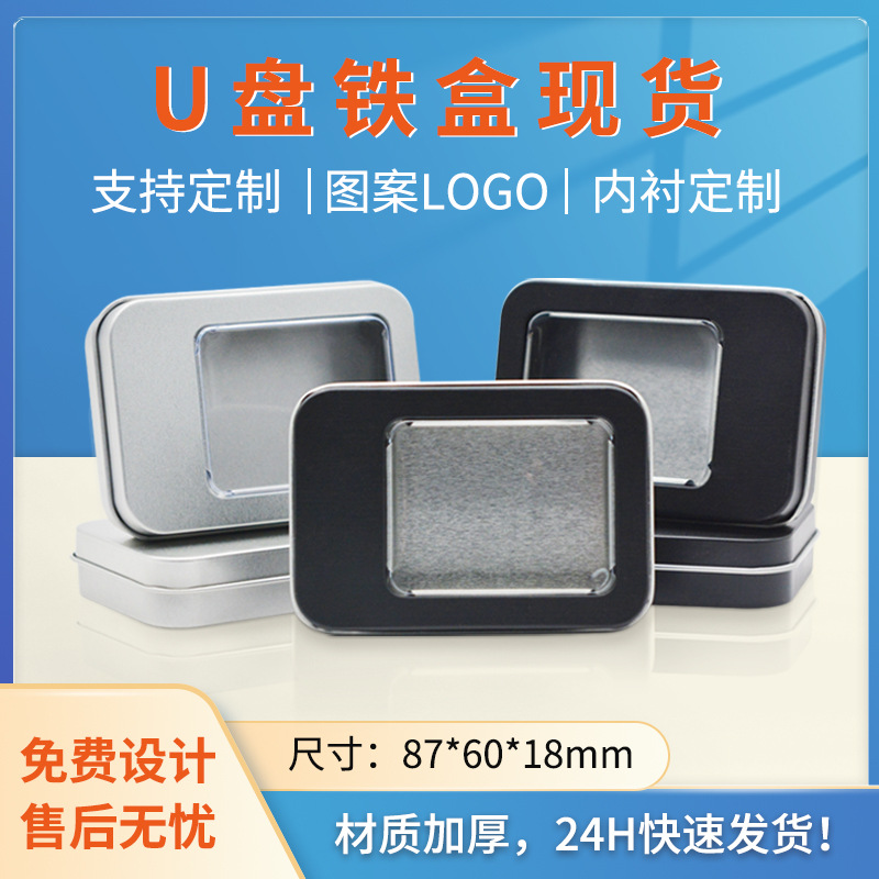 长方形马口铁盒 U盘金属包装盒 开窗收纳现货铁盒化妆品盒定制