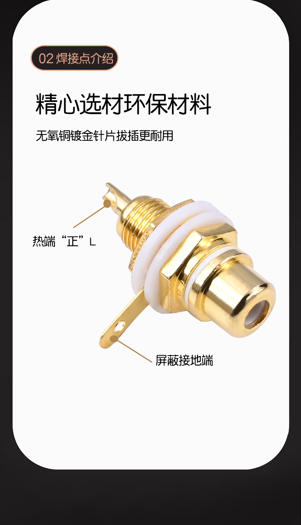 Yongwei 全銅金メッキ RCA ロータスメスプラグ AV オーディオおよびビデオケーブル同軸ケーブル溶接ヘッドオーディオ RL チャンネルヘッド