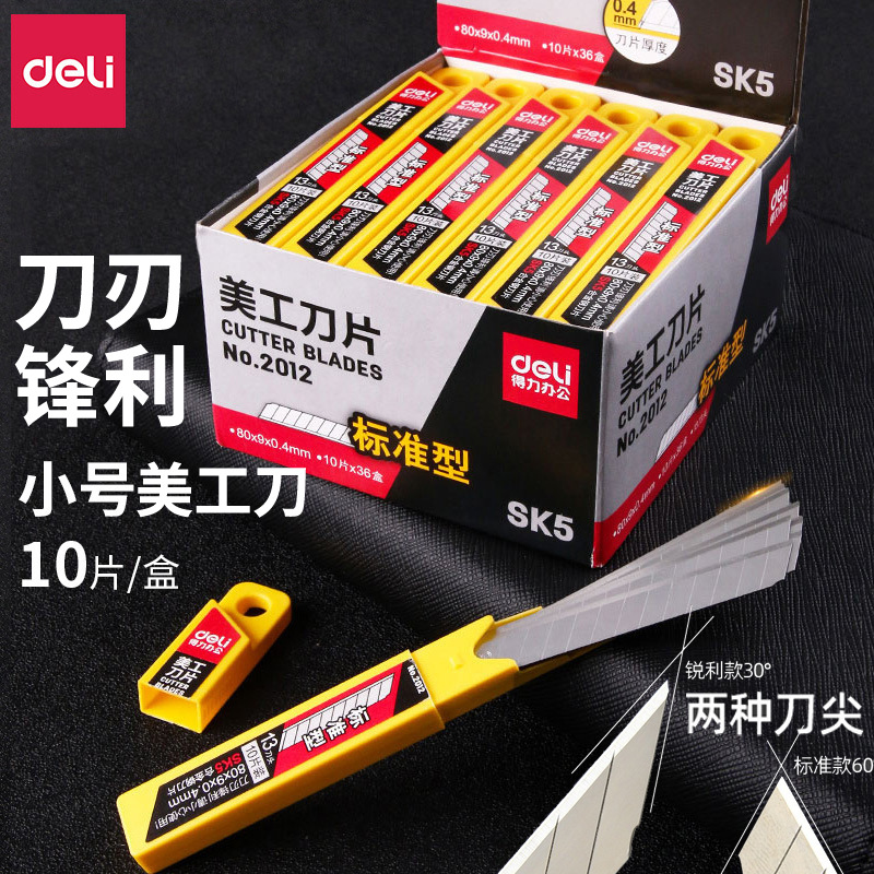得力2012小号美工刀片9mm小刀片小号美工刀裁纸刀片替换刀片刀刃