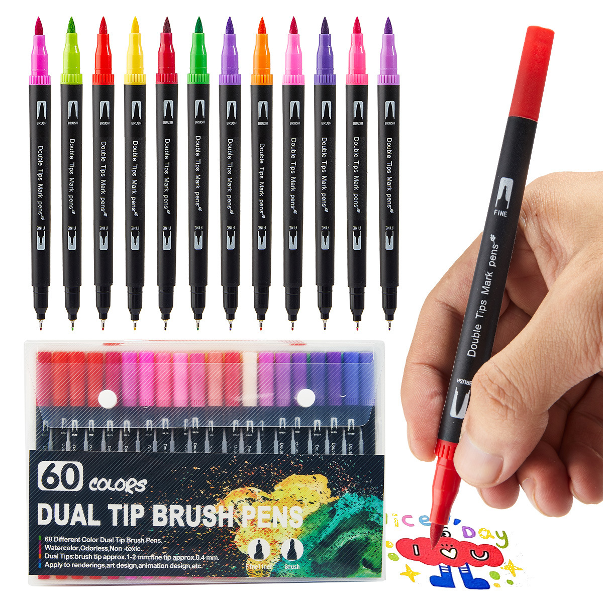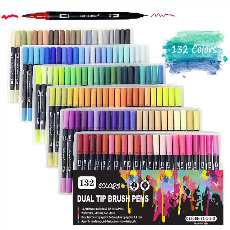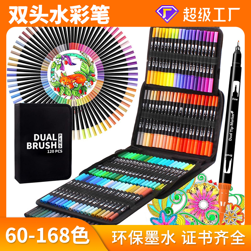120色72色60色彩色软头勾线双头水彩笔套装美术绘画用品儿童画材