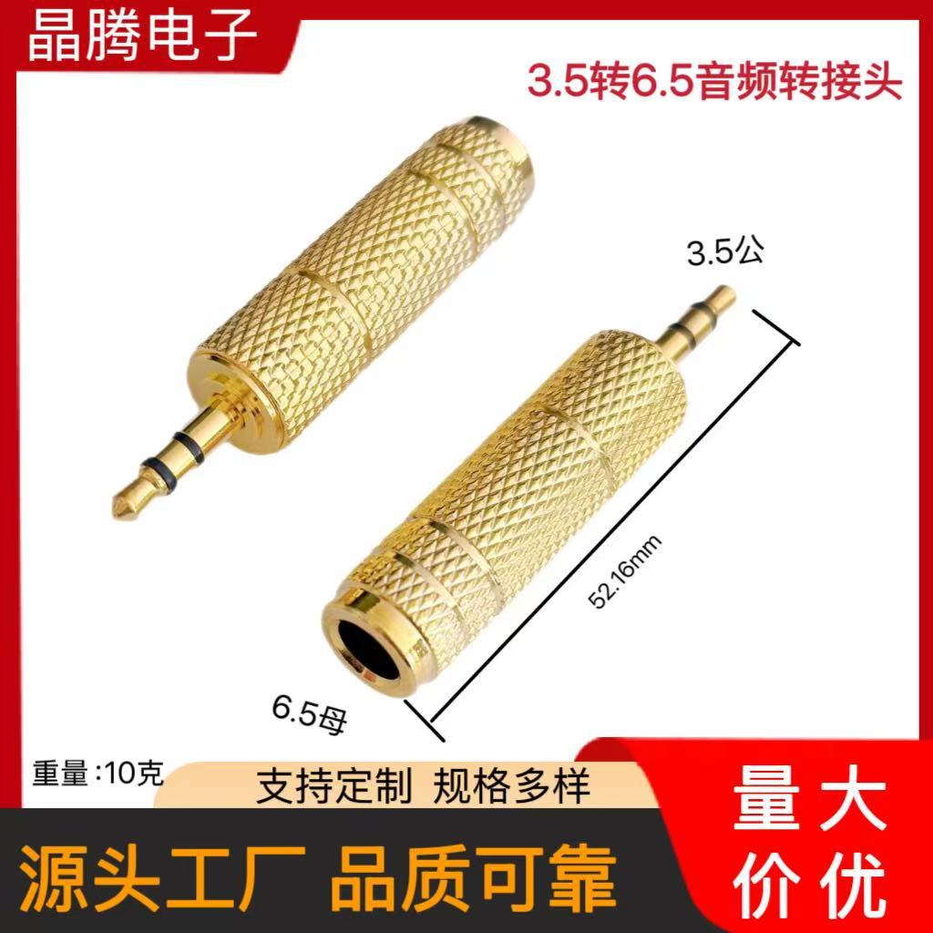 铜镀真金6.35立体公转3.5母转接头 内带弹簧