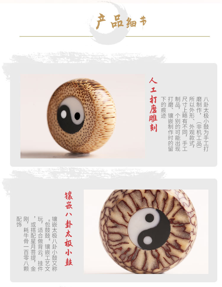 天然牛骨ゴシップペンダント金糸竹モザイク太極吊小鼓ペンダントバック雲文遊び手串部品アクセサリー