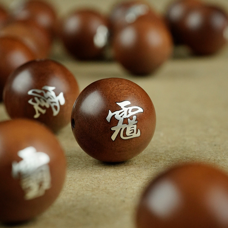 ナツメ材に銀象嵌の装飾品、紫薇象嵌の金光篆、民族風民俗道教装飾品、ルースビーズ、ビーズストリング