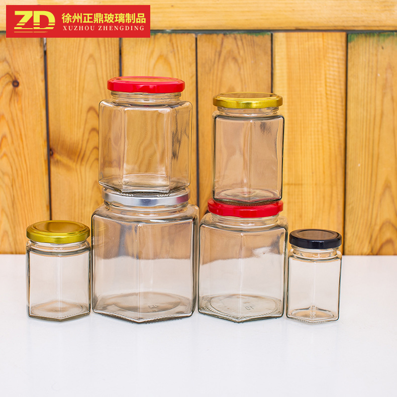 メーカー卸売り380ml蜂蜜六角瓶密封缶食品ガラス缶瓶辛いジャムガラス瓶