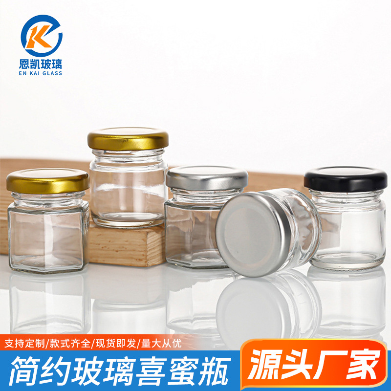 厂家密封45六棱玻璃蜂蜜果酱瓶子酱菜试吃分装瓶25ml迷你喜密小号
