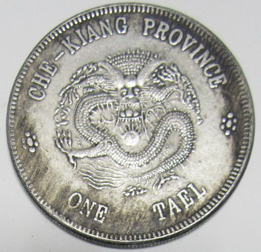 【品名】:直径45mm浙江省造光绪元宝一两银元