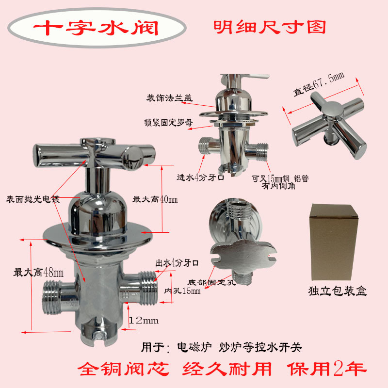 マクフィリ炒め鍋用十字水栓、コンロ用水量調節スイッチ、キッチン用品給水バルブ、隠蔽式バルブ、調整可能
