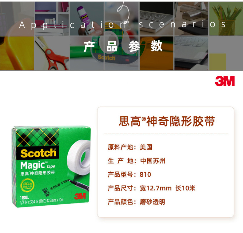 正規品3m思高スコッチ810マジックステルステープ透明テープ学生コピーミス