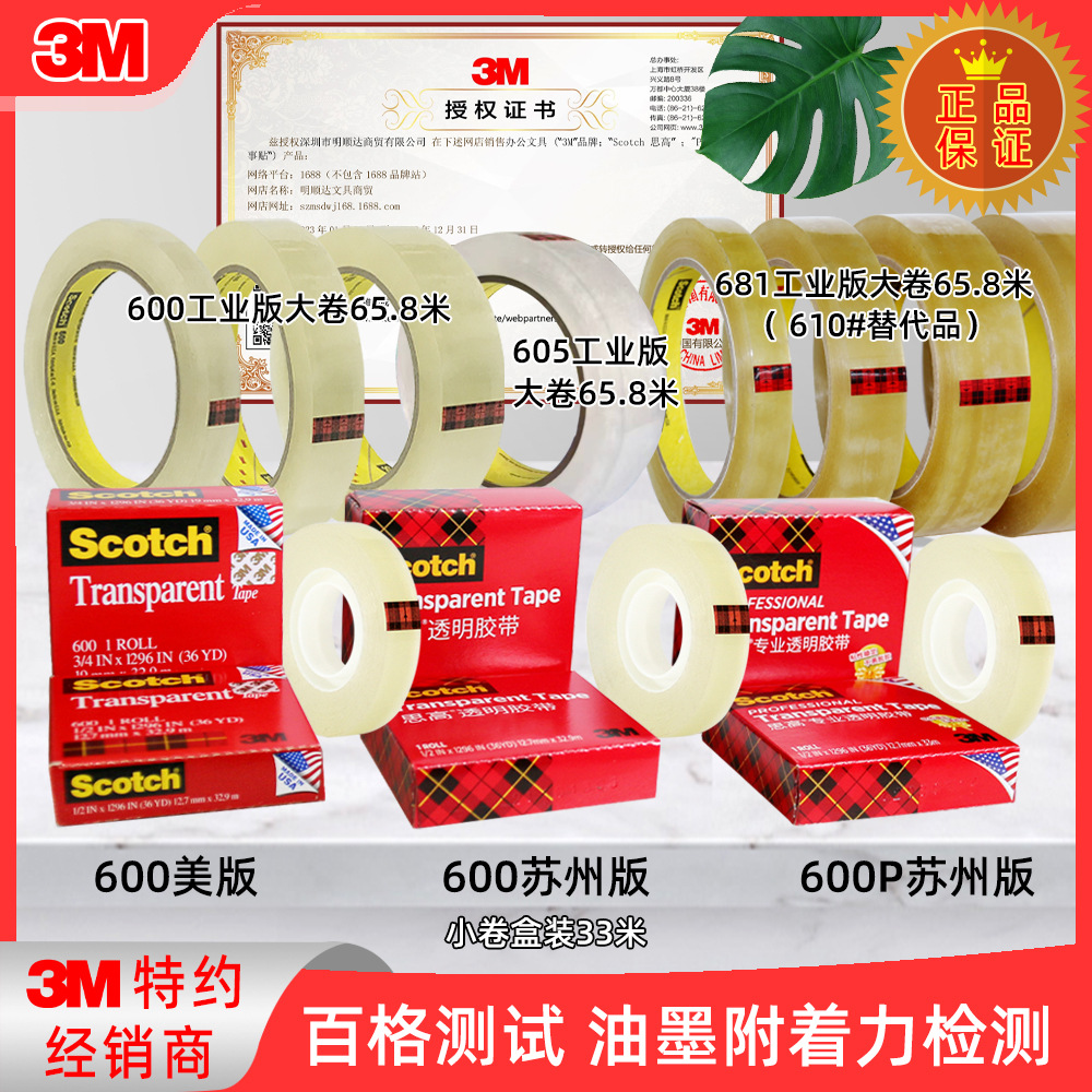 3M思高透明テープ600百格テストテープ600Pインク付着力検査テープ大巻き681 #