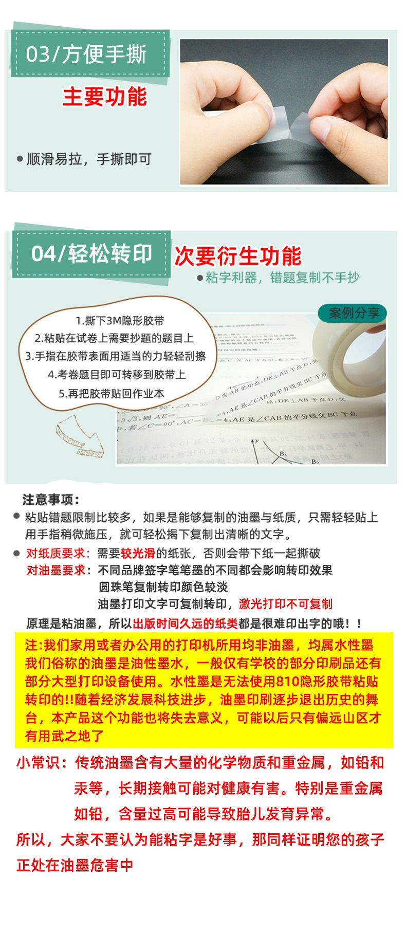 間違った問題のテープ高校生の見えないテープは貼り付けて、学生の透明な手をコピーして誤りを訂正することができます。