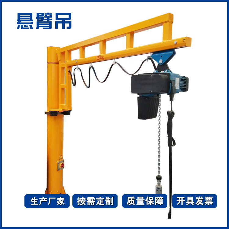 悬臂起重机是近年发展起来的中小型起运装备,结构独 特,方便快捷,具有高效、节能、省时、省力、灵活的特点,三维空间内随意操作,在短距、密集性起运的场合比其他常规性起运设备很好的显示其特点,常应用于不同行业的不同场所。