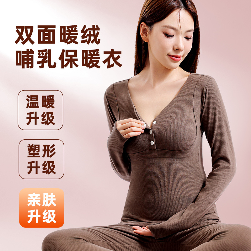 妊婦の秋冬の両面の暖かい絨毯の妊婦の授乳の保温の下着のスーツはブラジャーを着用しないでウエストの保温服を調節することができます。