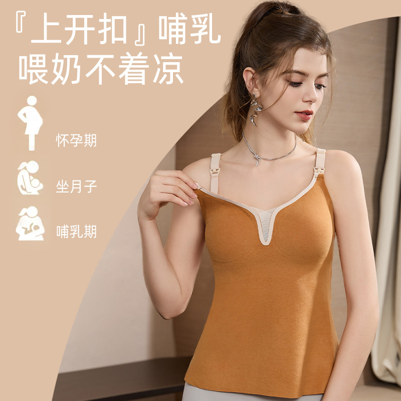 授乳下着保温秋冬にベルベットの胸パッド付き妊婦の授乳ストラップ哺乳ベストが厚い下着