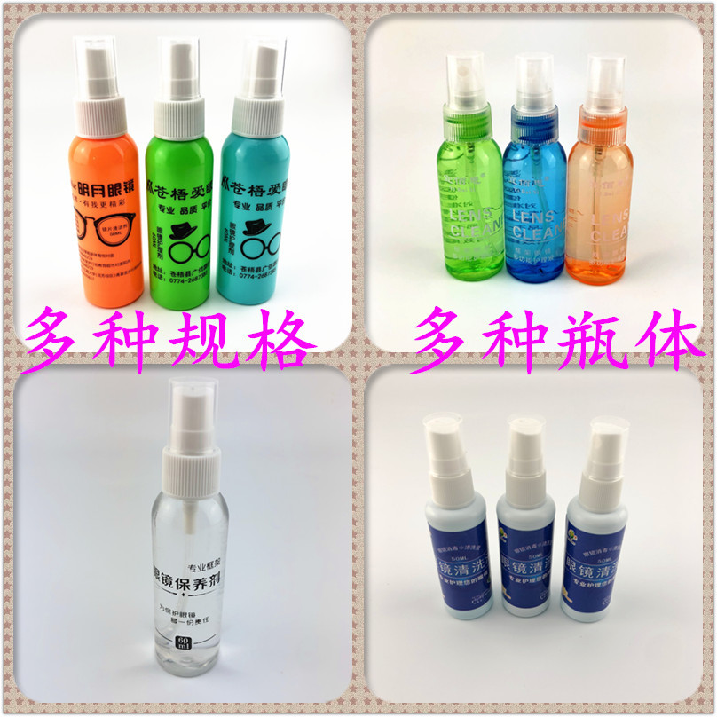 眼镜清洗液有60ML装和50ML装,瓶体LOGO可以改变,由顾客朋友提供图片或别的素材,我们专业的排版师会为您设计出满意的产品标签。印刷周期10天左右。