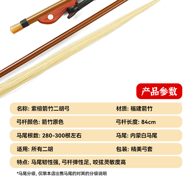 二胡弓子メーカー直販公白馬尾毛紫檀専門琴弓魚演奏試験級楽器部品