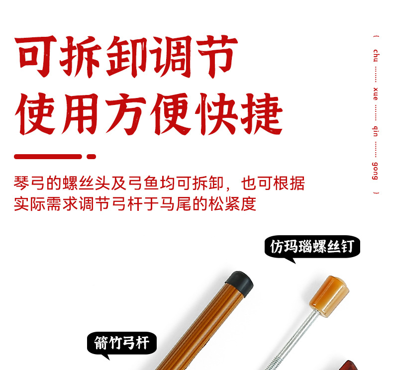 演奏級二胡弓高級二胡弓子紫檀弓魚精選白竹真馬尾二胡弓部品卸売り