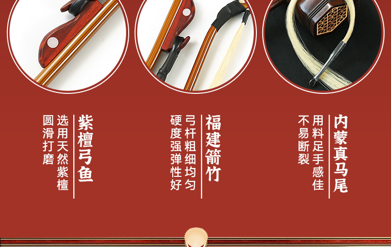 メーカー直販紫檀二胡弓専門演奏級高級二胡弓子白馬尾二胡楽器部品