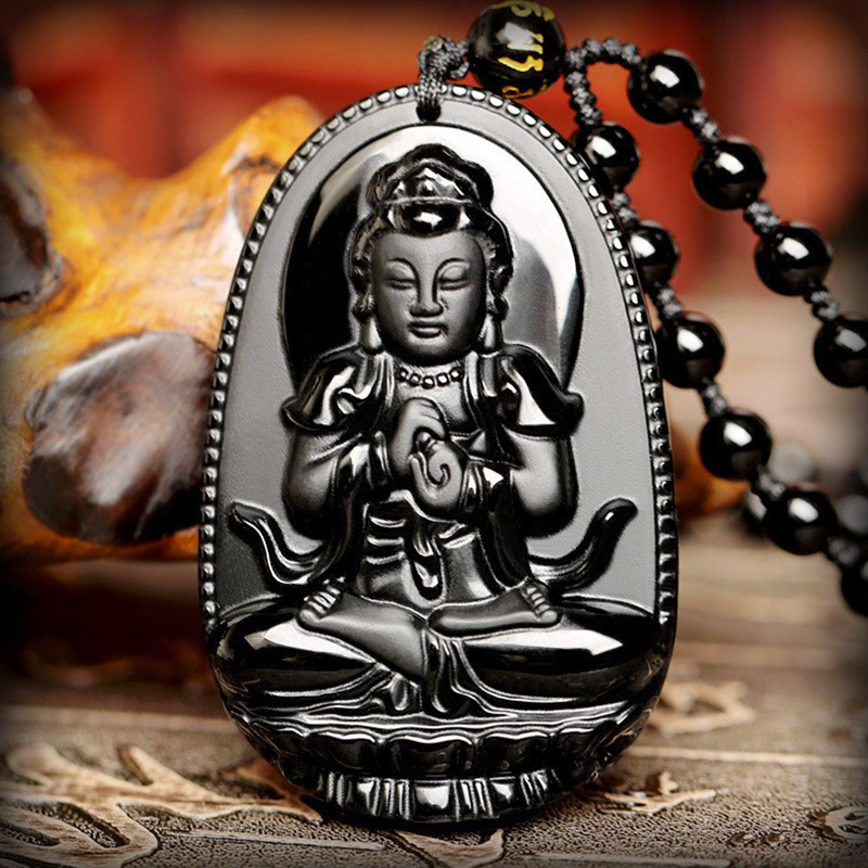 黒曜石本命仏ペンダント十二生肖虚空蔵普賢文殊菩薩本命年観音ネックレス男女